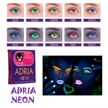 Срок ношения 3 месяца. Продаются в упаковках по 2 штуки. Линзы серии Adria Neon есть с диоптриями и без диоптрий.